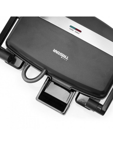 Tristar GR-2856. Cor do produto: Preto, Inox, Material do corpo do produto: Acrilonitrila butadieno estireno (ABS), Baquelite, Forma: Retangular. Potência: 1500 W, Voltagem de entrada AC: 220 - 240 V, Frequência de entrada AC: 50 / 60 Hz. Comprimento do fio: 1 m ;