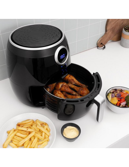 A tecnologia de ar quente permite fritar, assar, tostar e cozinhar diversos alimentos, atingindo resultados crocantes sem a necessidade de utilizar grandes quantidades de óleo. Este método de cozedura é mais saudável e contribui para um estilo de vida mais equilibrado. O painel de controlo digital é intuitivo e fácil de utilizar, com um temporizador digital que chega aos 60 minutos e 8 programas de cozedura predefinidos para diferentes tipos de alimentos.