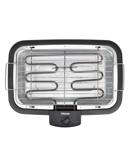 Tristar BQ-2883. Energia total: 2000 W, Modelo: Churrasco, Fonte de calor: Eléctrico. Fator de forma: Chaleira, Tipo de superfície: Grelha, Cor da caixa: Preto. Número de pernas: 4 perna(s), Visor com LED duplo: Pó. Voltagem de entrada de AC: 220 - 240 V. Peso do produto: 2,9 kg, Largura: 355 mm, Profundidade da caixa: 465 mm ;