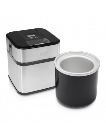 Princess 282605. Tipo de produto: Máquina de gelados com compressor, Capacidade da tigela: 1,5 l, Tempo de preparação: 20 min. Cor da caixa: Preto, Inox. Largura do produto: 201 mm, Profundidade da Unidade: 201 mm, Altura da Unidade: 234 mm. Potência: 12 W, Voltagem de entrada de AC: 220-240. Tamanho da embalagem: 270 x 235 x 235 mm