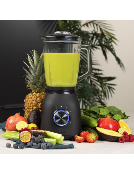 A batidora de vaso Princess 212092 é um eletrodoméstico versátil e potente, perfeito para preparar uma variedade de bebidas e alimentos. Com um design elegante em preto mate, faz parte da coleção Black Steel, que se destaca pelo seu acabamento sofisticado e moderno, ideal para cozinhas contemporâneas. A sua potência de 1000W permite lidar com os ingredientes mais duros, desde frutas congeladas até gelo, sem esforço. As 6 lâminas de aço inoxidável do robusto bloco de lâminas garantem uma mistura eficiente e homogénea.