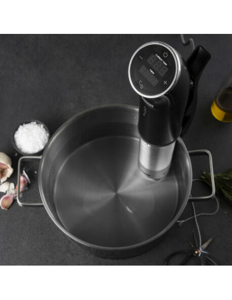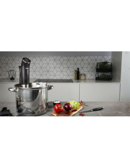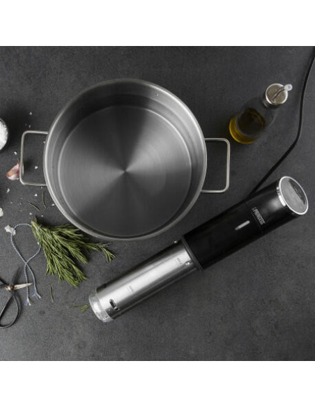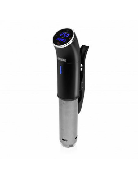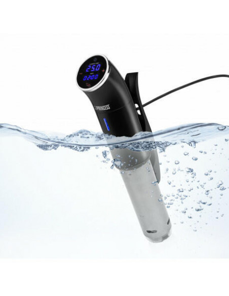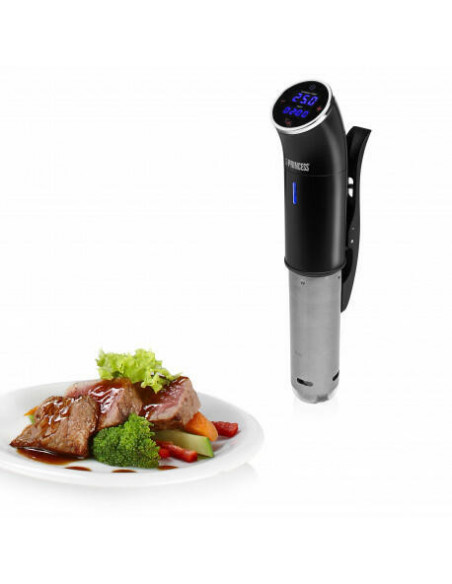 Princess 267003. Tipo de produto: Forno de água sous vide, Cor do produto: Preto, Inox, Tipo de controlo: Toque. Temperatura (mín.): 25 °C, Temperatura (máx.): 95 °C, Código de protecão internacional (IP): IPX7. Potência: 1200 W. Peso do produto: 1,35 kg. Quantidade por recipiente intermodal (20 pés): 3648 unidade(s), Quantidade por recipiente intermodal (40 pés): 7560 unidade(s), Quantidade por contentor intermodal (40ft, HC): 8736 unidade(s)