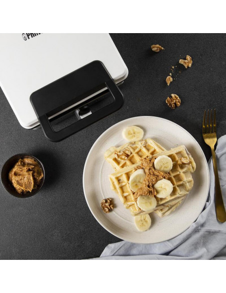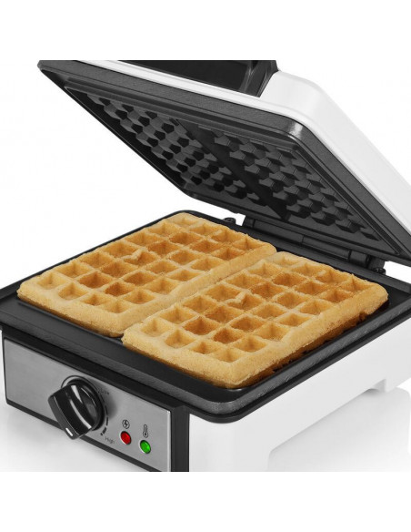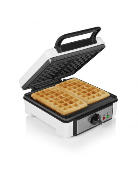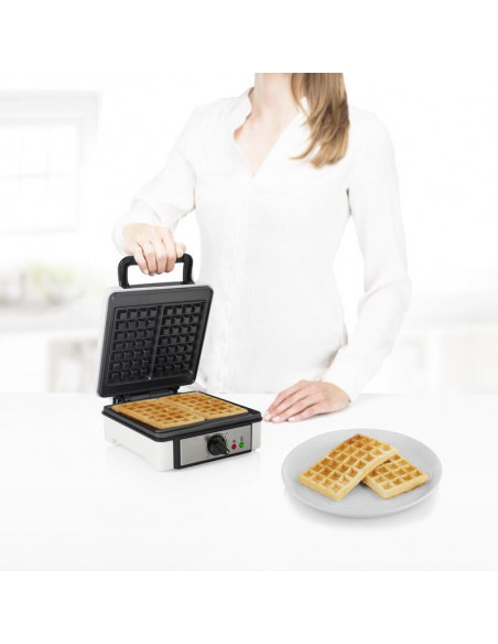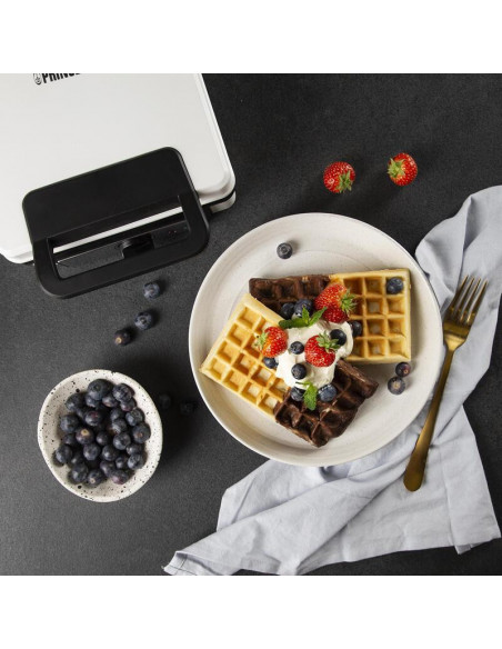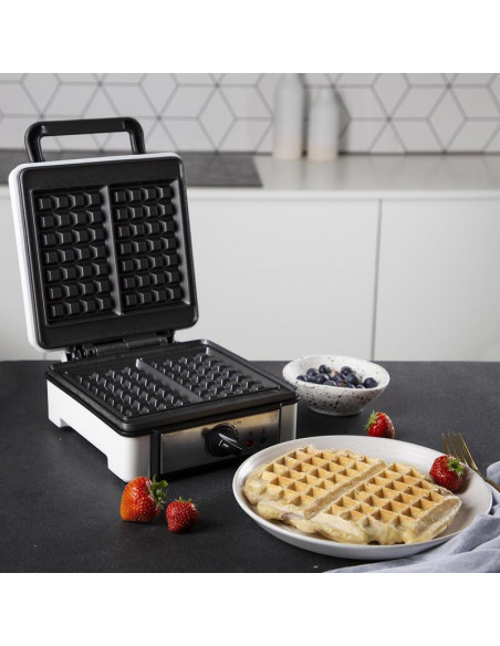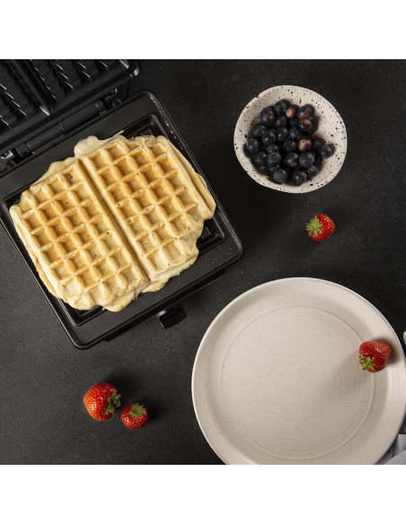 Para garantir que os gofres fiquem com a textura perfeita, a gofreira dispõe de um termostato ajustável, que permite controlar a temperatura de acordo com as suas preferências, permitindo obter gofres mais moles ou mais crocantes. A segurança é assegurada pela base antiderrapante e pela pega fria ao toque, tornando o uso seguro, mesmo para pessoas menos experientes na cozinha, e ideal para o envolvimento das crianças nas tarefas da cozinha.