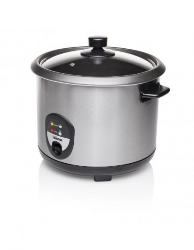 A sua potência de 900W garante um cozimento rápido e uniforme, enquanto a cuba interior com revestimento antiaderente impede que o arroz grude, facilitando a limpeza. O design moderno e elegante em aço inoxidável complementa qualquer cozinha moderna, e os pés antiderrapantes garantem estabilidade durante a utilização.