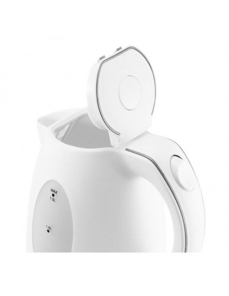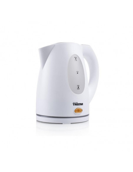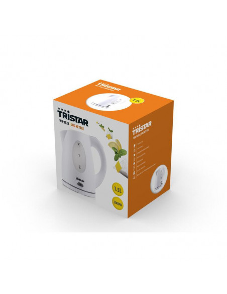 A chaleira elétrica Tristar WK-1324 é a solução perfeita para quem procura um método rápido e eficiente para ferver água. Com uma capacidade de 1,5 litros, ideal para preparar chá, café instantâneo ou outros alimentos que necessitam de água quente, esta chaleira garante resultados rápidos graças à sua potência de 2000W.  O design elegante e prático inclui uma base giratória 360°, permitindo um manuseamento confortável para utilizadores destros e canhotos.  A chaleira é também muito fácil de limpar, com um elemento de aquecimento integrado.  Para maior segurança, a Tristar WK-1324 dispõe de um sistema de desligamento automático quando a água atinge a ebulição, prevenindo acidentes e economizando energia.  A proteção contra sobreaquecimento e a proteção contra ebulição a seco garantem que a chaleira é segura para usar. A chaleira tem uma construção em plástico sem BPA e uma base antiderrapante para maior estabilidade. O filtro removível ajuda a eliminar impurezas da água.  A luz indicadora permite verificar facilmente se a chaleira está ligada.  Em resumo, a chaleira Tristar WK-1324 oferece uma combinação de rapidez, praticidade e segurança, tornando-se um eletrodoméstico essencial para a sua cozinha.
