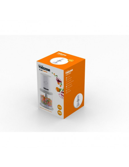 Tristar BL-4020. Capacidade da tigela: 0,5 l. Cor da caixa: Cinzento, Branco, Material da taça: Plástico, Material da lâmina: Inox. Potência: 200 W. Peso do produto: 2 kg, Largura: 180 mm, Profundidade da caixa: 245 mm ;