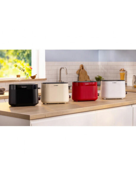 Bosch TAT2M123. Número de fatias: 2 fatia(s), Cor do produto: Preto, Material do corpo do produto: Plástico. Potência: 950 W, Voltagem de entrada AC: 220 - 240 V, Frequência de entrada AC: 50/60 Hz. Comprimento do fio: 1 m, Largura: 304 mm, Profundidade: 165 mm. Comprimento da embalagem: 190 mm, Profundidade da embalagem: 350 mm, Altura da embalagem: 253 mm. Não contem: Bisfenol-A (BPA).
