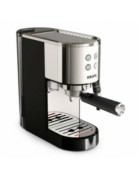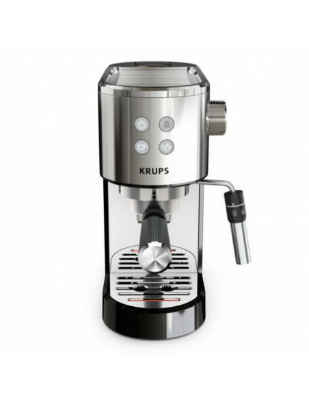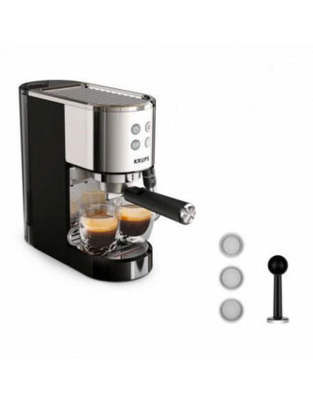 Krups Virtuoso XP444C10. Tipo de produto: Máquina espresso, Tipo de cafeteira: Semiautomático, Volume do depósito de água: 1 l, Tipo de entrada de café: Café moído, Reservatório para café moído: Copo, Capacidade em copos: 2 chávenas, Número de bicos: 2. Potência: 1350 W. Cor do produto: Aço inoxidável