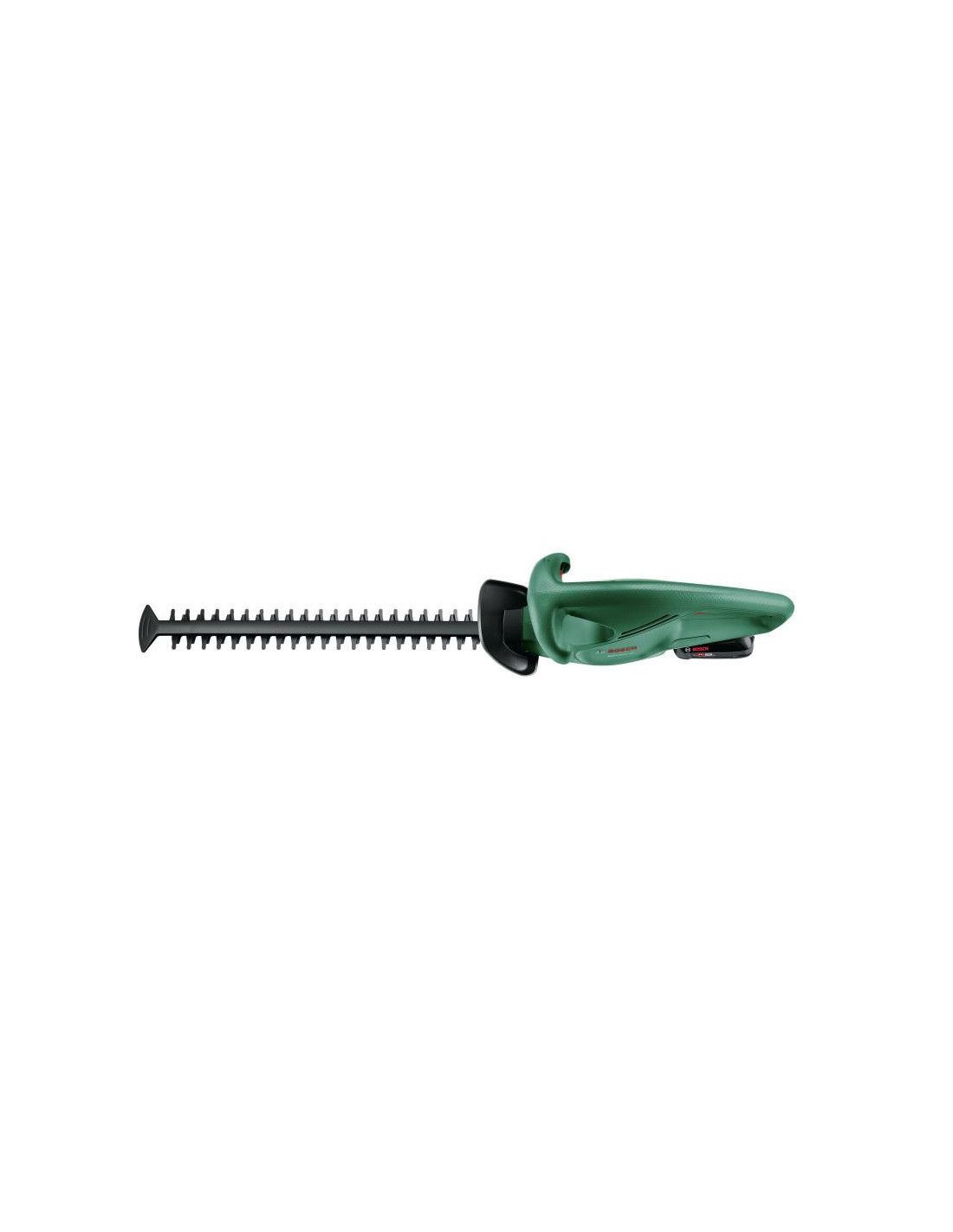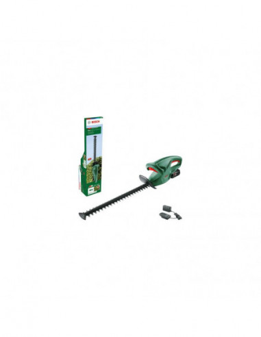 Bosch EasyHedgeCut 18-52-13. Fonte de alimentação: Bateria, Voltagem da bateria: 18 V, Capacidade da bateria: 2 Ah. Peso: 2,8 kg, Largura: 245 mm, Altura máxima: 22,5 cm. Tipo de embalagem: Caixa. Máximo de área coberta: 170 m² ;