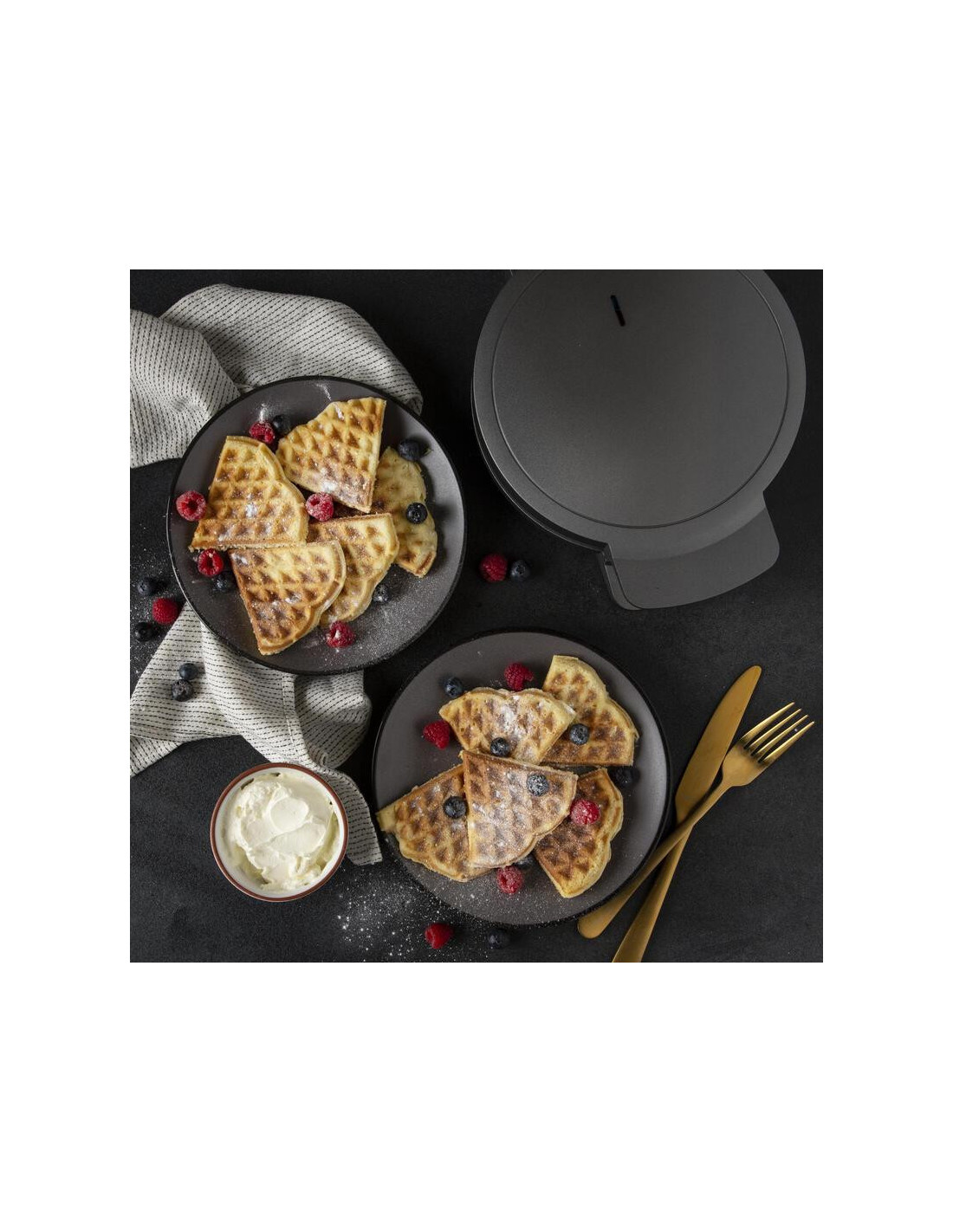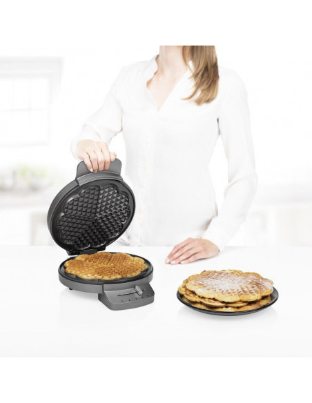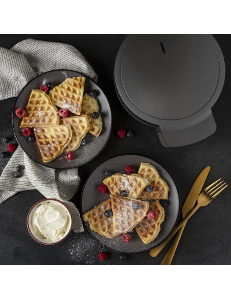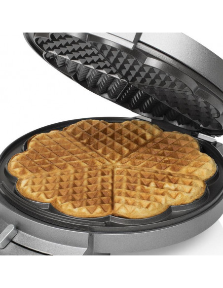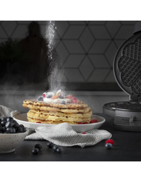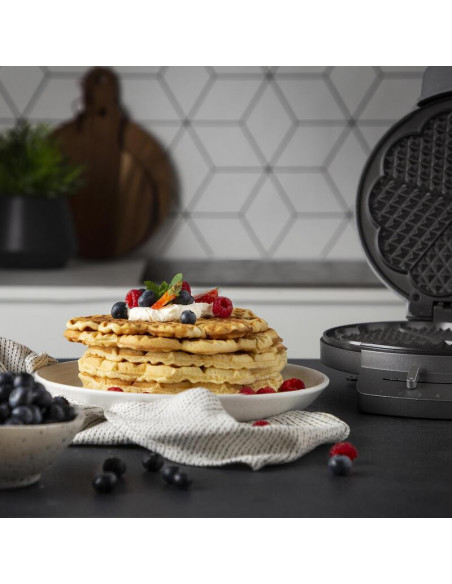 Para obter resultados perfeitos, o termostato regulável permite controlar a temperatura de acordo com a receita, permitindo que escolha a textura ideal para os seus gofres. Escolha entre cinco níveis de temperatura, garantindo um nível de tostagem perfeito para os seus gostos.