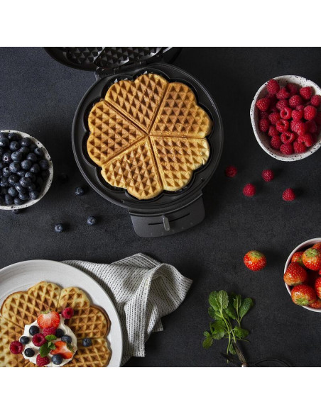 A gofreira Princess 132380 permite-lhe criar deliciosos gofres em forma de coração, perfeitos para um pequeno-almoço especial ou um lanche saboroso. Com um diâmetro de 20 cm, esta gofreira prepara simultaneamente cinco gofres em forma de coração, ideais para partilhar com amigos e familiares.