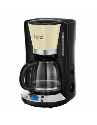 Russell Hobbs Colours Plus+. Design da caixa: Independente. Volume do depósito de água: 1,25 l, Capacidade em copos: 10 chávenas. Reservatório para café moído: Jarro. Tipo de cafeteira: Completamente automático, Tipo de entrada de café: Café moído. Potência: 1100 W. Cor da caixa: Preto, Creme