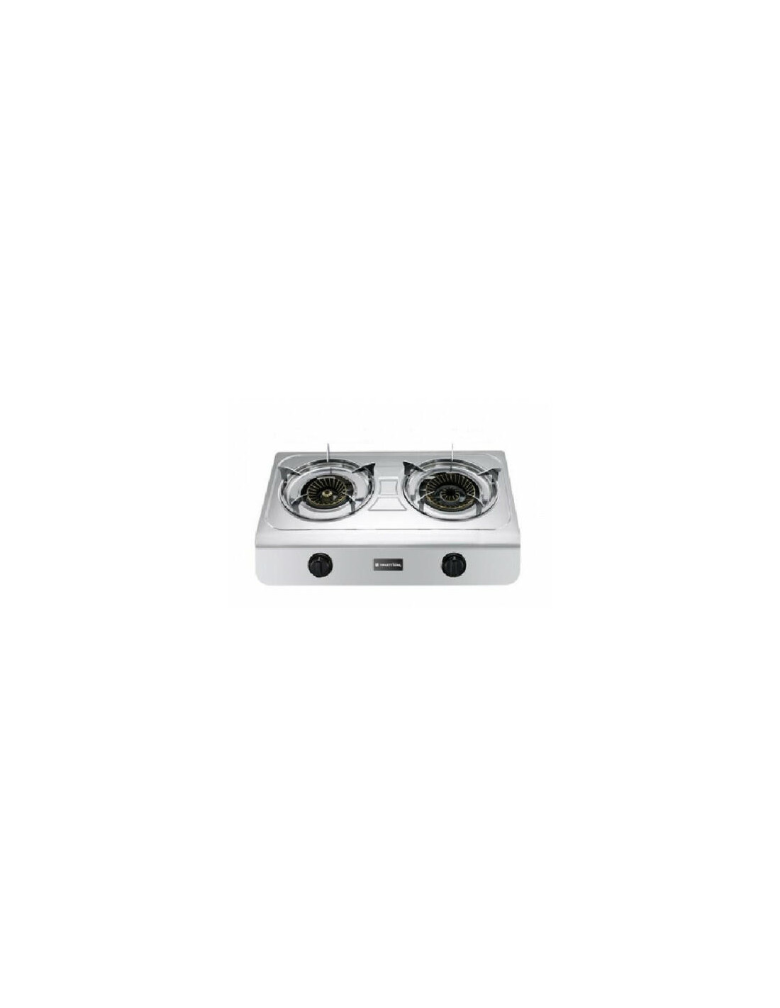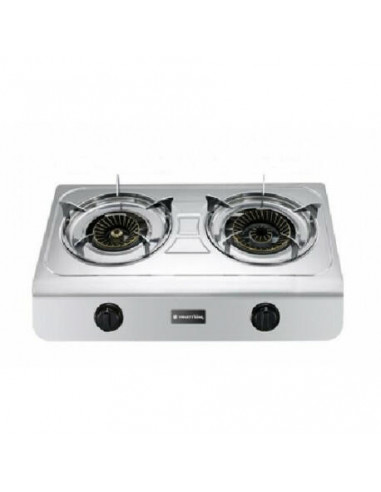 Fogareiro Inox Características: Butano 28-30 mbar / Propano 37 mbar ; Queimadores dupla coroa: Acendimento automático; Medidas: A 100mm x L 600mm x P380mm Carga nomial: Esquerdo: 3,3 Kw ; 268 g/h Direito: 4,3 Kw ; 339 g/h