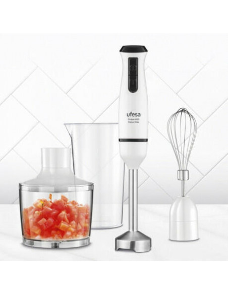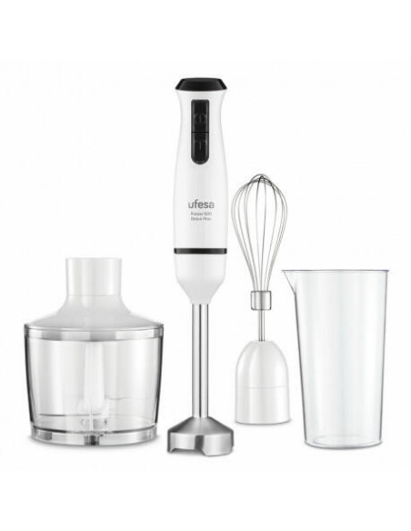 Ufesa 70105523. Capacidade da tigela: 0,6 l, Tipo de controlo: Botões. Tipo: Varinha mágica, Cor do produto: Preto, Branco. Potência: 600 W, Fonte de alimentação : AC. Largura: 220 mm, Profundidade: 110 mm, Altura: 238 mm