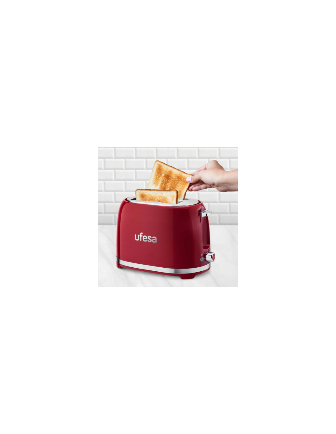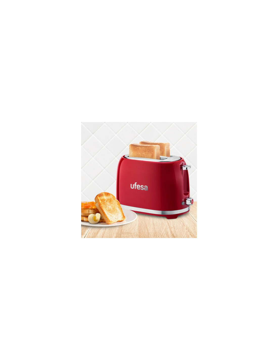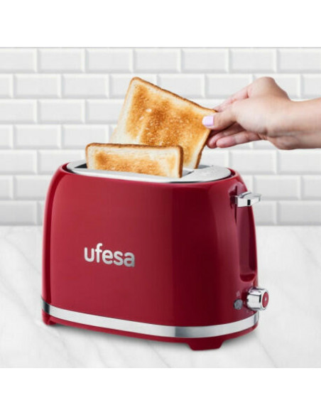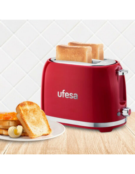 Ufesa 71305516. Número de fatias: 2 fatia(s), Cor do produto: Vermelho, Tipo de controlo: Rotativo. Potência: 850 W. Largura: 186 mm, Profundidade: 310 mm, Altura: 202 mm. Comprimento da embalagem: 325 mm, Profundidade da embalagem: 578 mm, Altura da embalagem: 424 mm