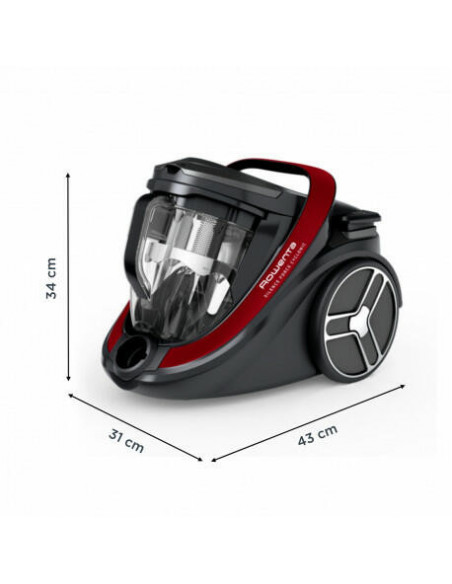 Rowenta Silence Force RO7933EA. Potência máxima de entrada: 500 W. Tipo: Aspirador cilíndrico, Tipo de limpeza: Seco, Tipo de coletor de pó: Sem bolsa, Capacidade de pó: 2,5 l. Filtro de ar de aspirador: HEPA, Método de separação do lixo: Ciclónico, Nível de ruído: 59 dB. Cor do produto: Vermelho, Preto