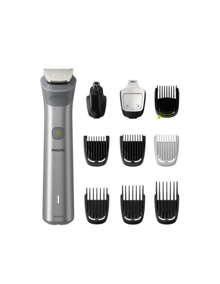 Uma ferramenta, modelação completa Para rosto, cabelo e corpo Crie o seu estilo pessoal com este aparador versátil, que inclui 10 acessórios de qualidade para estilizar o rosto, a cabeça e o corpo. As lâminas em aço inoxidável de afiação automática mantêm-se tão afiadas como no primeiro dia, sem lubrificação, para um aparar preciso. ;