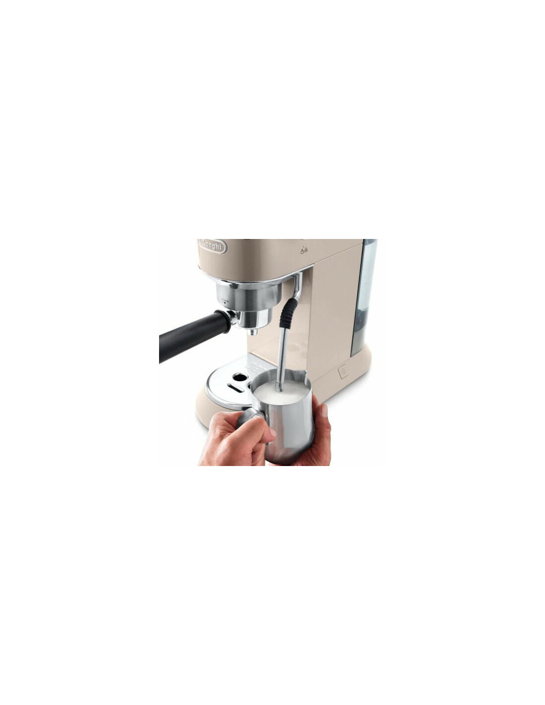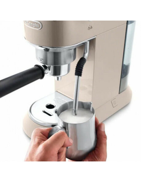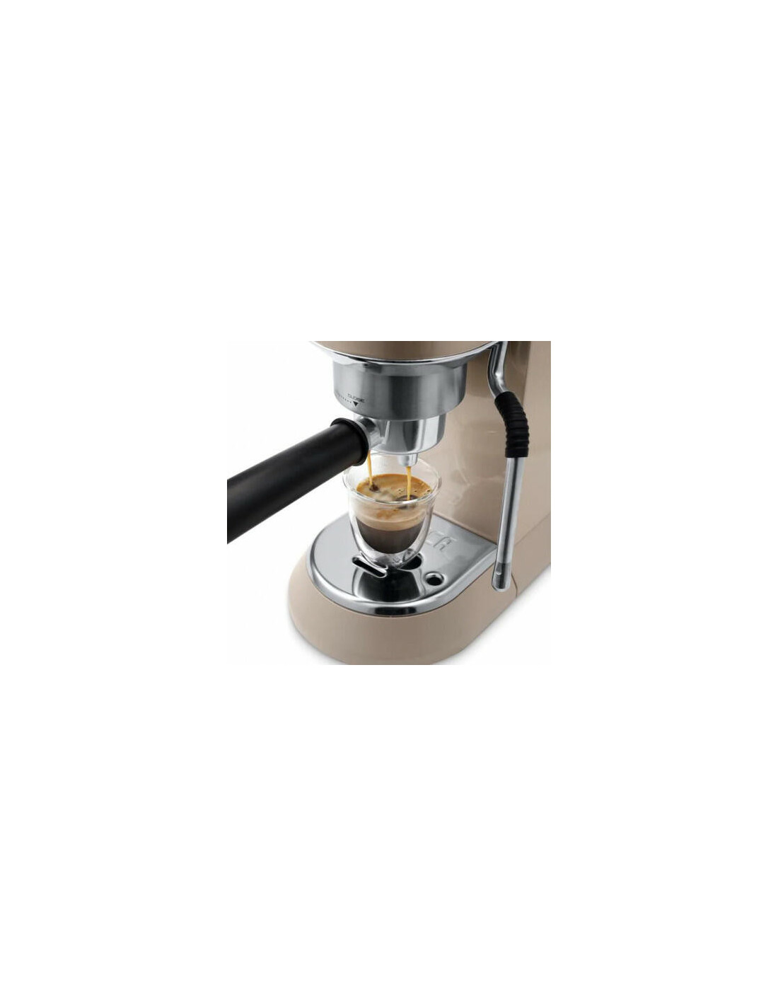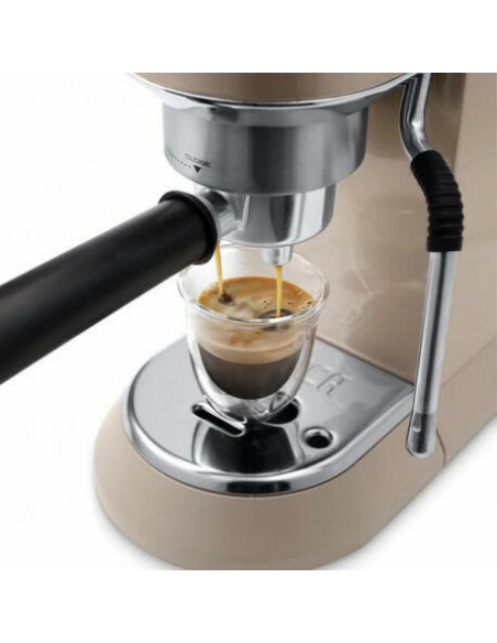 De’Longhi Dedica Arte EC885.BG. Tipo de produto: Máquina espresso, Tipo de cafeteira: Manual, Volume do depósito de água: 1,1 l, Tipo de entrada de café: Doses individuais, Café moído, Reservatório para café moído: Copo, Capacidade em copos: 2 chávenas. Potência: 1300 W. Cor do produto: Bege