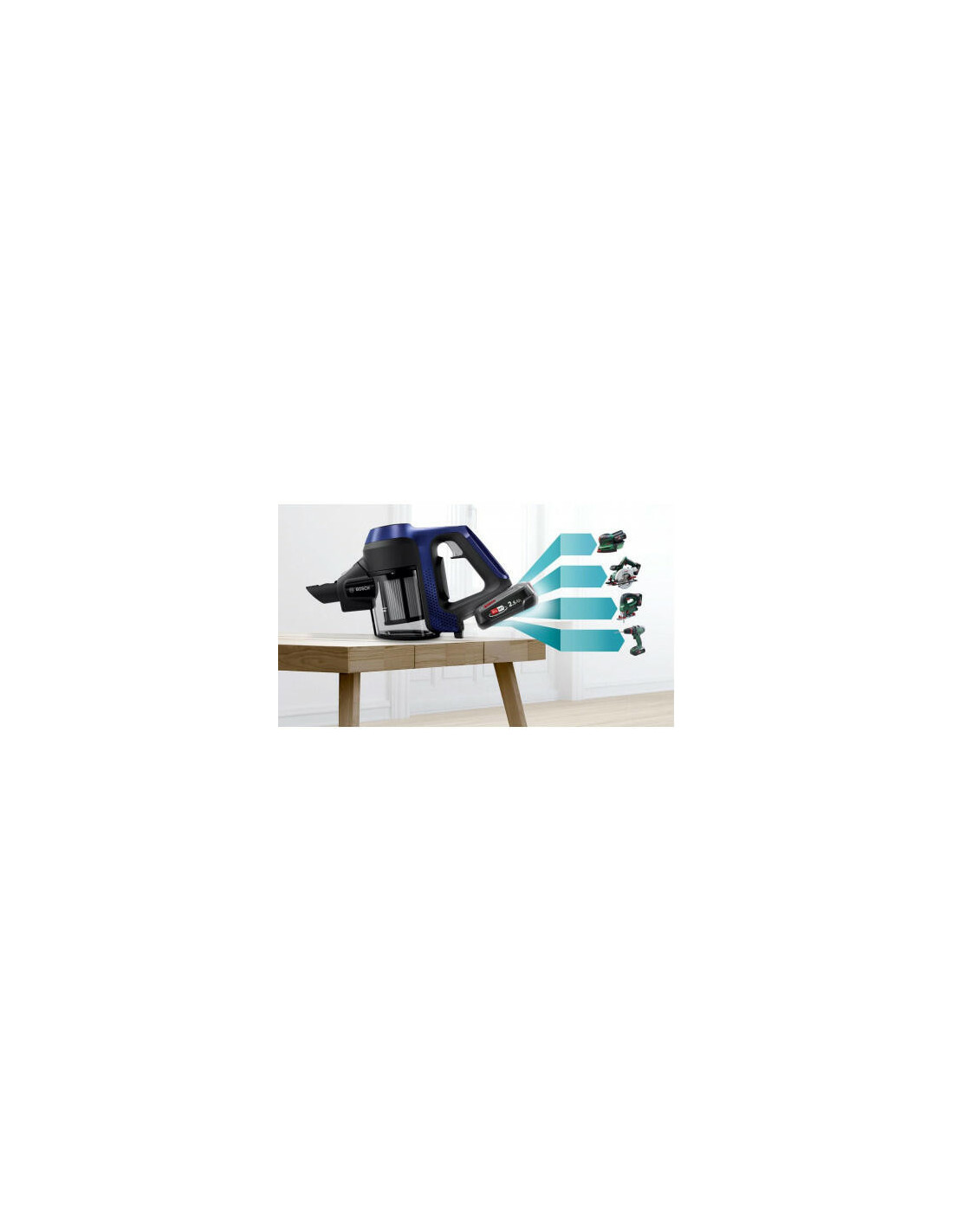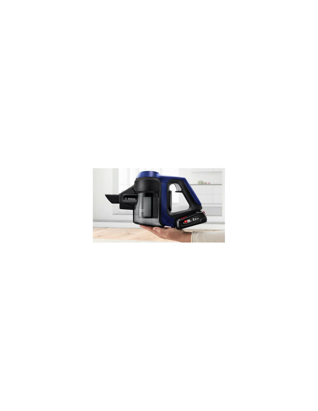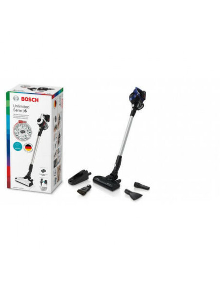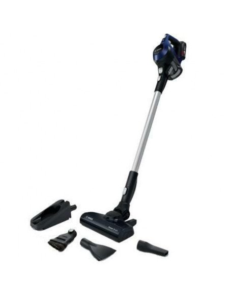 Bosch Serie 6 BBS611MAT. Tipo de coletor de pó: Sem bolsa, Cor do produto: Azul, Capacidade de pó: 0,3 l. Tipo de limpeza: Seco. Fonte de alimentação: Bateria, Voltagem da bateria: 18 V, Tempo de funcionamento: 30 min. Largura: 200 mm, Profundidade: 265 mm, Altura: 1220 mm