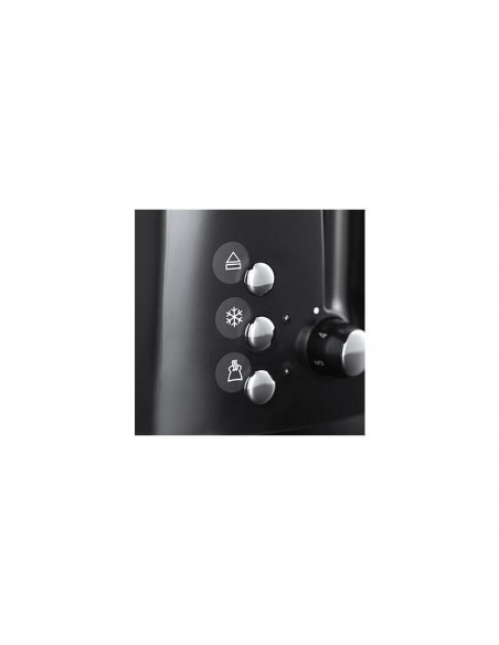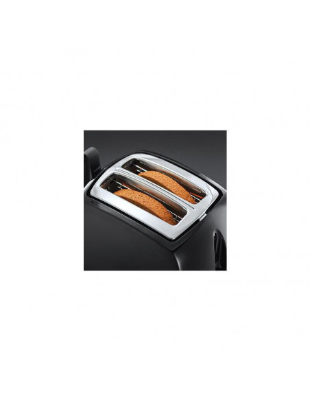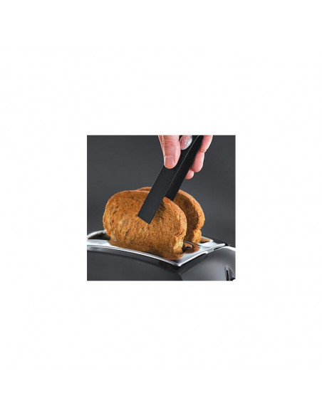 Tostadora Russell Hobbs Textures Plus, com 2 ranhuras para tostar até 2 fatias de pão simultaneamente. Design compacto e funcional, na cor preta.