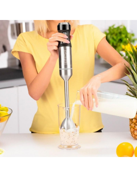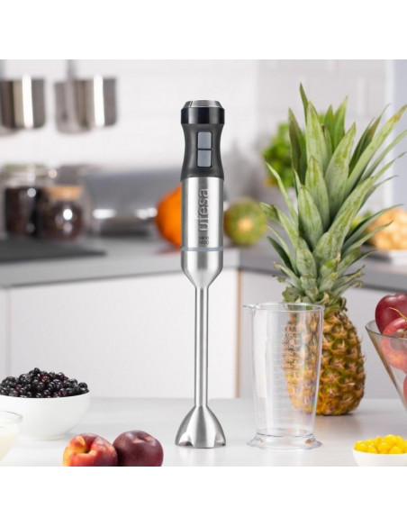 Ufesa BP4750. Tipo de controlo : Botões, Rotativo. Tipo: Varinha mágica, Cor do produto: Preto, Aço inoxidável. Material da lâmina: Titânio. Potência: 1400 W, Fonte de alimentação: AC. Largura : 105 mm, Profundidade: 105 mm, Altura: 485 mm ;