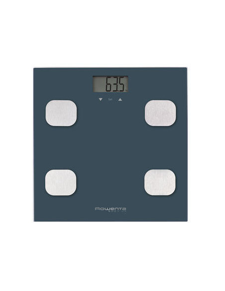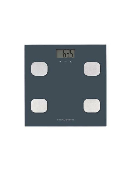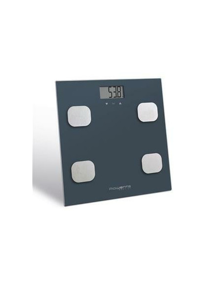 - Rowenta Báscula de baño con medidor de grasa corporal e IMC que almacena hasta 8 perfiles de usuario, con una gran pantalla LCD, plataforma de vidrio, hasta 150 kg de capacidad, BR2520V0
