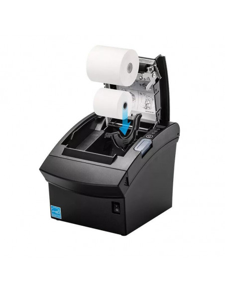 O sistema de carga de papel é intuitivo e fácil de usar, facilitando a manutenção e a substituição das bobinas. O dispositivo de corte manual garante um corte preciso dos recibos, contribuindo para uma experiência de usuário otimizada. Os indicadores LED facilitam o acompanhamento do estado da impressora, permitindo a rápida identificação de possíveis problemas. Para maior eficiência, a SRP-350V permite uma economia de até 25% de papel por bobina com três níveis de compressão através da Unified Utility, sem necessidade de alterações de software.