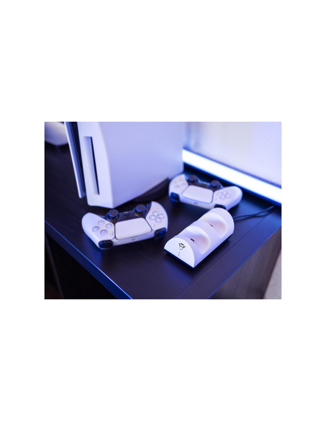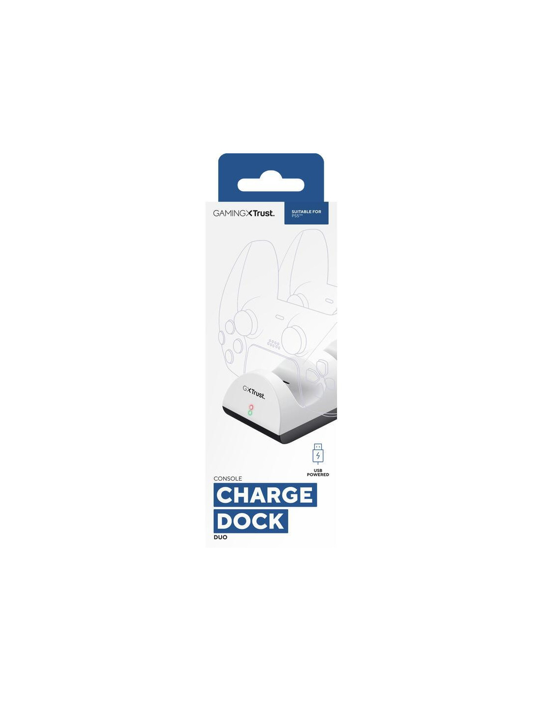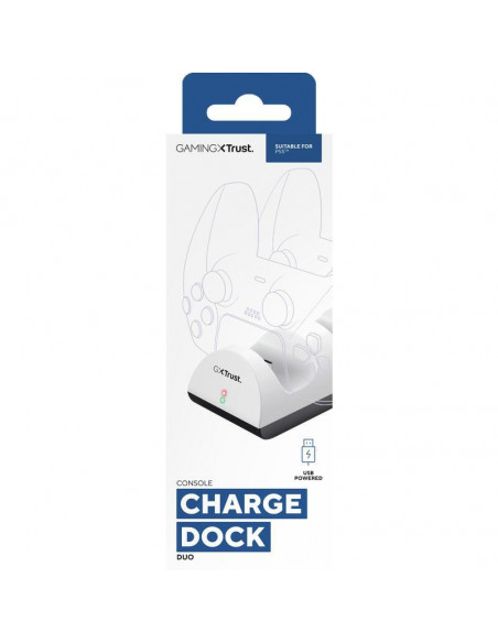 A Trust Gaming GXT 254 Duo Charge Dock é uma estação de carregamento dupla para comandos da PS5. Design compacto e elegante, com indicadores LED que mostram o estado de carregamento. Carregamento simultâneo de dois comandos.