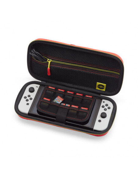 As dimensões do estojo são de 45 mm de altura, 150 mm de largura e 255 mm de profundidade, com um peso total de 233g. Estas dimensões compactas permitem fácil transporte e armazenamento. A PowerA, uma marca reconhecida por oferecer produtos de qualidade para gamers, garante a máxima segurança e durabilidade. Este estojo proporciona uma proteção integral para o seu investimento.