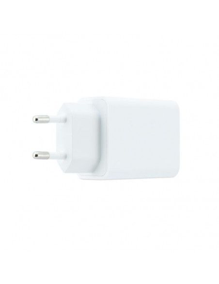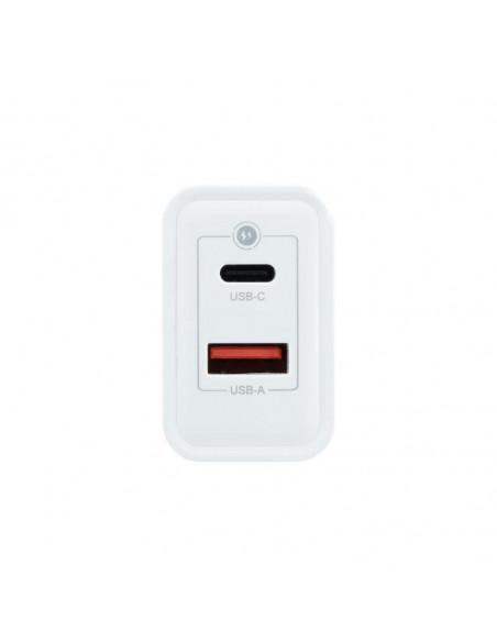 O carregador dispõe de uma porta USB-C com suporte a Power Delivery (PD) e uma porta USB-A com tecnologia QuickCharge 3.0. Ambas as portas permitem um carregamento rápido e otimizado para os seus dispositivos compatíveis. A porta USB-C PD suporta uma potência de saída máxima de 45W, ideal para carregar rapidamente smartphones e tablets com tecnologia de carregamento rápido. A porta USB-A QuickCharge 3.0 oferece um carregamento rápido para dispositivos compatíveis com esta tecnologia.