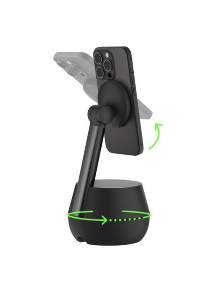 O suporte Belkin Pro oferece uma solução inovadora para quem necessita de um suporte estável e versátil para smartphone ou tablet. O seu sistema de seguimento automático garante a captura de vídeo sem trepidações, ideal para criadores de conteúdo e streamers. O design rotativo permite ajustar o ângulo de visualização com facilidade, enquanto o sistema de encaixe rápido facilita a montagem e desmontagem do dispositivo. O DockKit integrado aumenta a funcionalidade do suporte, adicionando opções de conectividade e carregamento. O suporte Belkin Pro é construído com materiais de alta qualidade, garantindo durabilidade e estabilidade. É uma solução perfeita para melhorar a qualidade das suas gravações de vídeo, simplificando o processo de captura. A construção em plástico proporciona leveza sem comprometer a estabilidade.  O sistema de encaixe rápido permite uma transição suave entre diferentes dispositivos, otimizando o seu fluxo de trabalho.  A integração do DockKit amplia as possibilidades, permitindo a ligação de acessórios adicionais, como microfones, luzes ou outros dispositivos essenciais para produção de vídeo.  A versatilidade do suporte Belkin Pro torna-o uma escolha ideal para uma ampla gama de aplicações, desde vlogging e streaming até a criação de conteúdo profissional.