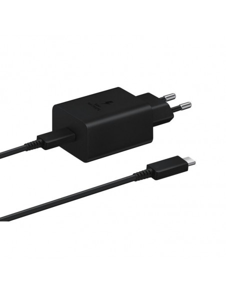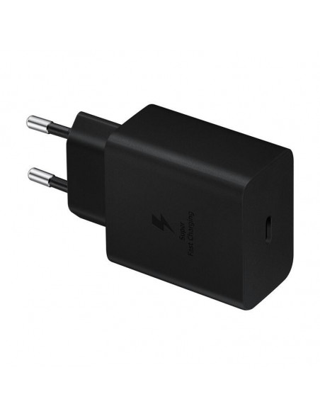 Carregador Samsung EP-T4510 de 45W com uma porta USB-C para carregamento rápido de dispositivos móveis. Compatível com múltiplos protocolos de carregamento rápido.