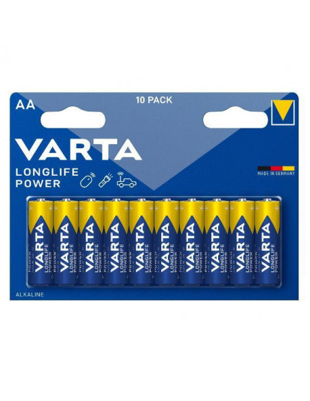 Pack de 10 pilhas alcalinas AA da VARTA, ideais para uma variedade de dispositivos electrónicos. Oferecem energia confiável e duradoura, com uma tensão nominal de 1,5V. Não recarregáveis. Garantia de 24 meses.