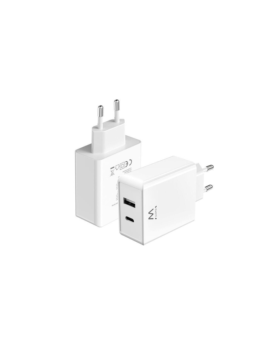 O carregador rápido Ewent EW1328 com tecnologia GaN (Nitreto de Gálio) oferece carregamento eficiente para seus dispositivos. Com duas portas, uma USB-C e uma USB-A, permite carregar simultaneamente diversos dispositivos com uma potência total de 45W. Seu design compacto e cor branca o tornam ideal para uso em casa ou escritório.