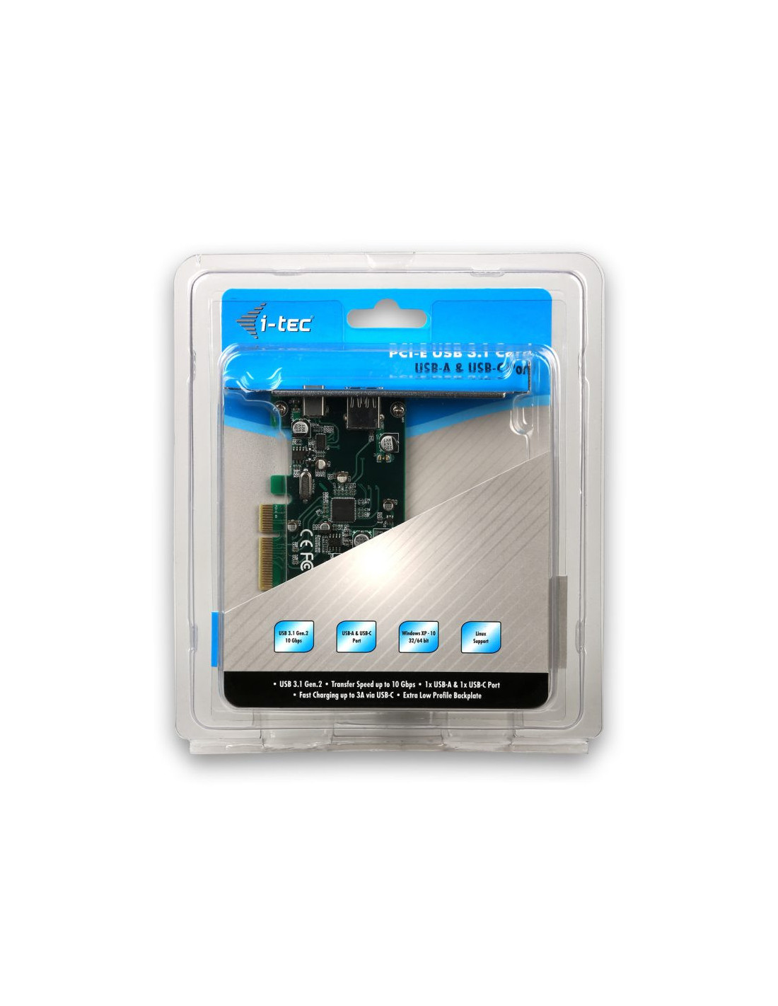 Placa i-tec PCE2U31AC: Adaptador PCIe para 2x USB 3.2 Gen 1 (1x USB-A + 1x USB-C), 10Gbps