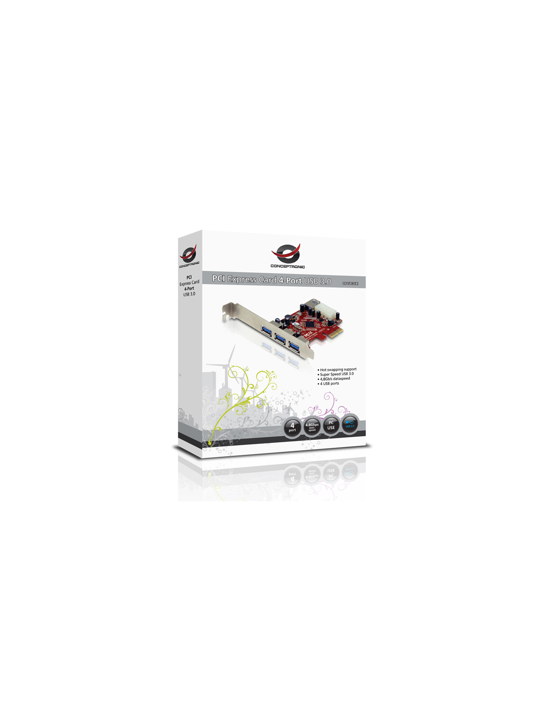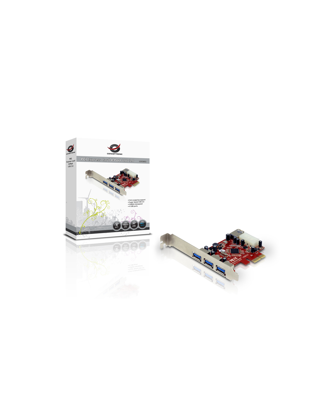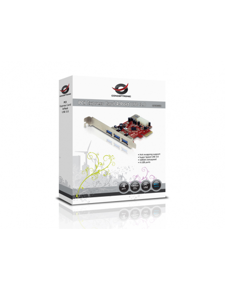Placa Conceptronic C4USB3EXI: PCIe, 4x USB 3.2 Gen 1, VIA VL800, 4,8 Gbit/s