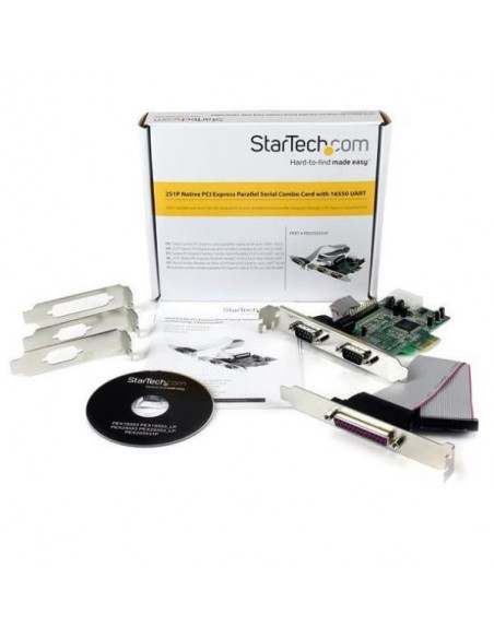 A Controladora StarTech.com PEX2S5531P, com o código de fabricante PEX2S5531P, é uma solução eficiente e versátil para adicionar conectividade serial e paralela ao seu computador. Esta placa adaptadora PCI Express transforma uma única ranura PCI Express em dois conectores seriais RS232 (DB9) e um conector paralelo, oferecendo flexibilidade para conectar uma variedade de dispositivos mais antigos e equipamentos industriais. A sua construção de chip único e nativo aproveita totalmente o potencial do PCI Express (PCIe), resultando em maior velocidade e confiabilidade do que as placas de adaptação convencionais que utilizam um design de chip ponte. De facto, reduz a carga do CPU em 48% em comparação com as alternativas.