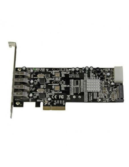 Controladora PCI Express Startech PEXUSB3S42V, que adiciona 4 portas USB 3.0 ao seu computador. Oferece velocidades de até 500 Mbps. Design para desktop. Não inclui cabos. Dimensões: 120mm x 15mm x 167mm. Garantia de 24 meses.