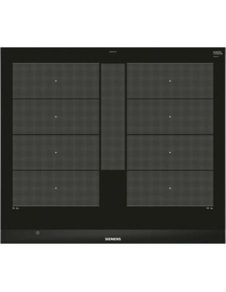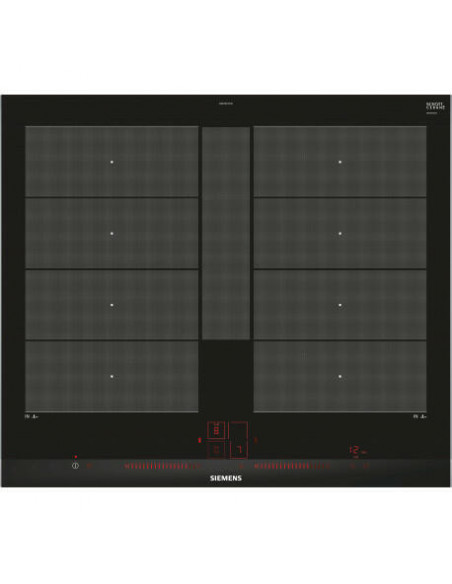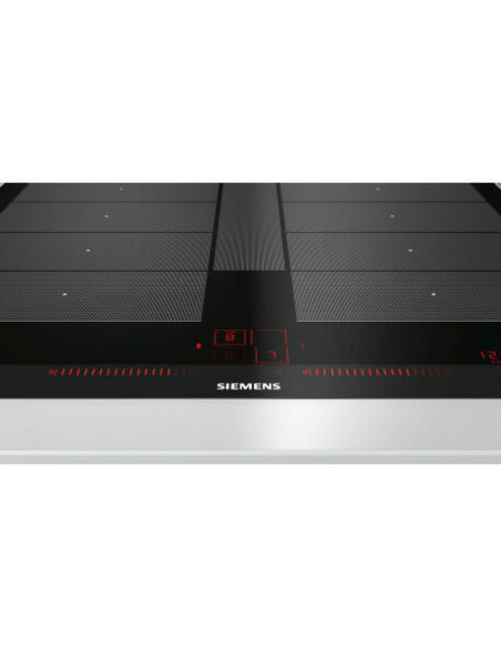Siemens EX675LYC1E. Cor do produto: Preto, Aço inoxidável, Local de colocação: Embutido, Tipo de boca: Placa com zona de indução. Zona de cozedura a fogo lento: 2200 W, Zona de cozedura média: 3300 W. Tipo de controlo: Barra de deslocamento, Toque, Posição de controlo: Topo frontal. Potência (elétrica ): 7400 W, Voltagem de entrada AC: 220-240 V, Frequência de entrada AC: 50 - 60 Hz. Largura: 602 mm, Profundidade: 520 mm, Altura: 51 mm