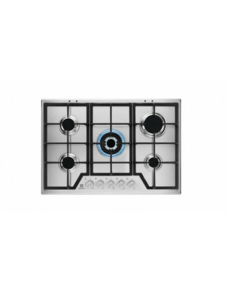 Electrolux KGS7536SX. Cor do produto: Preto, Aço inoxidável, Local de colocação: Embutido, Largura do fogão: 75 cm. Tipo de controlo: Rotativo, Posição de controlo: Front / Top front. Potência (gás): 11650 W, Voltagem de entrada AC: 220 - 240 V, Frequência de entrada AC: 50/60 Hz. Largura: 744 mm, Profundidade: 510 mm