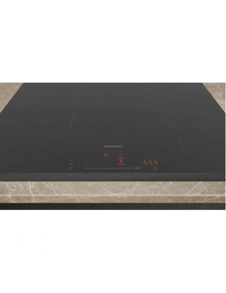 Siemens iQ100 EH631HDC1E. Cor do produto: Preto, Local de colocação: Embutido, Largura do fogão: 60 cm. Tipo de controlo: Toque, Posição de controlo: Frente. Potência (elétrica ): 7400 W, Voltagem de entrada AC: 220 - 240 V, Frequência de entrada AC: 50 - 60 Hz. Aplicações de controlo suportadas: Home Connect. Largura: 592 mm, Profundidade: 522 mm, Altura: 51 mm