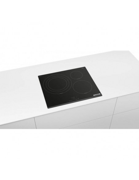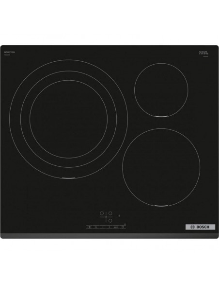 Bosch Serie 4 PID631BB5E. Cor do produto: Preto, Local de colocação: Embutido, Largura do fogão: 59.2 cm. Tipo de controlo: Toque, Posição de controlo: Topo frontal, Temporizador de 30 minutos: 20 min. Potência (elétrica ): 7400 W, Voltagem de entrada AC: 220 - 240 V, Frequência de entrada AC: 50 - 60 Hz. Largura: 592 mm, Profundidade: 522 mm, Altura: 51 mm. Altura da embalagem: 126 mm, Peso da embalagem: 14,6 kg ;