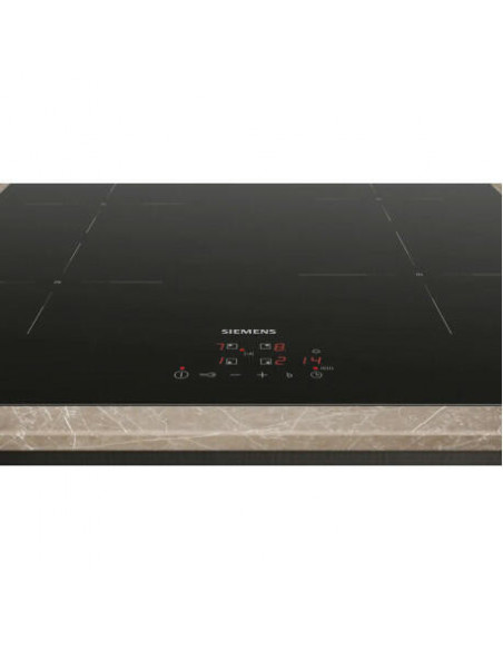 Siemens iQ100 EU611BEB5E. Cor do produto: Preto, Local de colocação: Embutido, Largura do fogão: 60 cm. Tipo de controlo: Toque, Posição de controlo: Topo frontal, Tipo de temporizador: Digital. Potência (elétrica ): 4600 W, Voltagem de entrada AC: 220 - 240 V, Frequência de entrada AC: 50/60 Hz. Siemens technologies (cooking): powerBoost. Largura: 592 mm, Profundidade: 522 mm, Altura: 51 mm