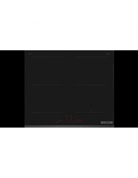 Bosch Serie 6 PVQ631HC1E. Cor do produto: Preto, Local de colocação: Embutido, Largura do fogão: 59.2 cm. Tipo de controlo: Toque, Posição de controlo: Frente. Potência (elétrica ): 7400 W, Voltagem de entrada AC: 220 - 240 V, Frequência de entrada AC: 50 - 60 Hz. Tecnologias Bosch (cozinha): Home Connect. Largura: 592 mm, Profundidade: 522 mm, Altura: 51 mm ;