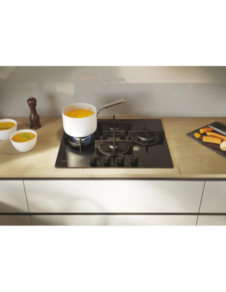 Moderna gás em vidro As placas Moderna Gas on Glass são concebidas para pessoas que adoram um design moderno e inovador capaz de combinar com todos os estilos de cozinha. Gás sobre placa de vidro proporciona um toque de elegância aliado a uma grande durabilidade e elevado nível de desempenho. O vidro temperado proporciona uma resistência única a riscos e abrasivos, tornando este produto incrivelmente durável ao longo do tempo. Ótima transmissão de calor O ferro fundido é um material muito apreciado porque garante uma melhor transmissão de calor, uma excelente resistência também às mais elevadas temperaturas e durabilidade. Uma solução que torna a sua cozinha um espaço profissional. Pare de lavar os suportes à mão Pare de perder tempo a lava(...)