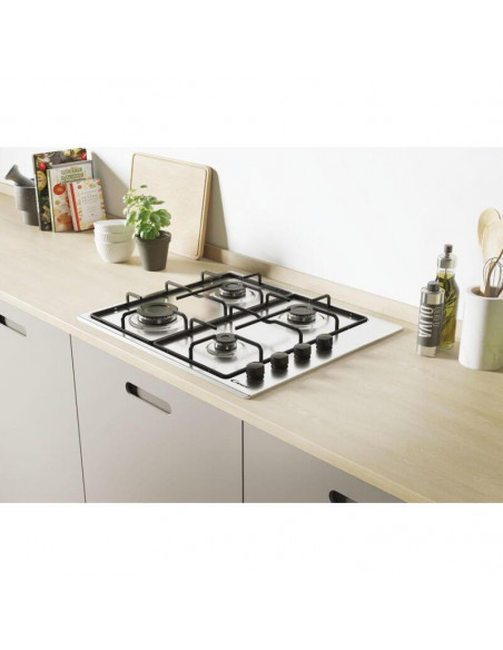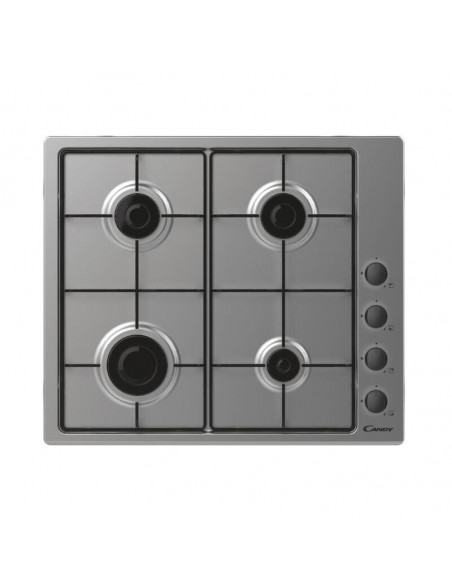 Placa de encastrar a gás Candy Smart CHW6LBX/4U, em aço inoxidável, com 4 zonas de cozedura.  Oferece segurança, praticidade e fácil limpeza.