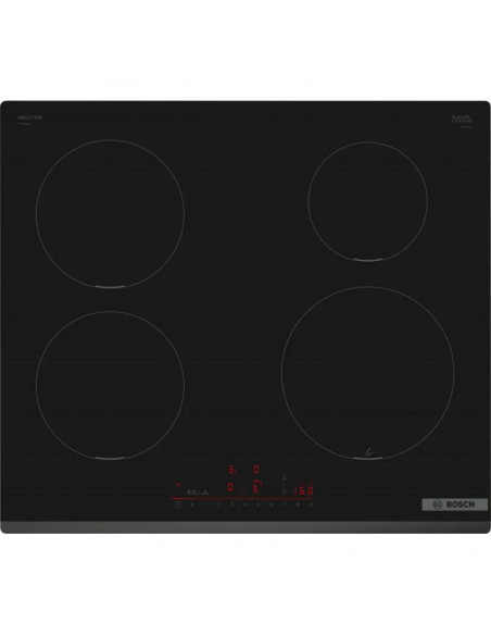 Bosch Serie 6 PIE631HC1E. Cor do produto: Preto, Local de colocação: Embutido, Largura do fogão: 60 cm. Tipo de controlo: Toque, Posição de controlo: Frente. Potência (elétrica ): 7400 W. Tecnologias Bosch (cozinha): Home Connect. Largura: 592 mm, Profundidade: 522 mm, Altura: 51 mm ;
