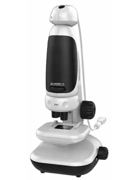 INSYSO microscópio digital INSYS SP4-716E#EDU 3-em-1 representa uma solução inovadora e versátil para a educação em STEM, combinando as vantagens da observação microscópica tradicional com as capacidades avançadas da visualização digital. Este microscópio permite tanto a observação direta através da ocular como a visualização em tempo real num monitor de computador, oferecendo flexibilidade e possibilidades didáticas expandidas.