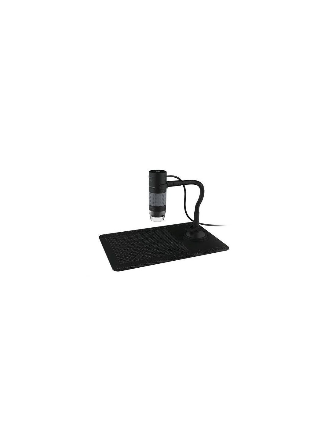 - Suporte: O microscópio inclui um suporte flexível com placa de observação graduada, permitindo um posicionamento estável e preciso da amostra. O suporte flexível facilita a manipulação e ajuste da amostra durante a observação.