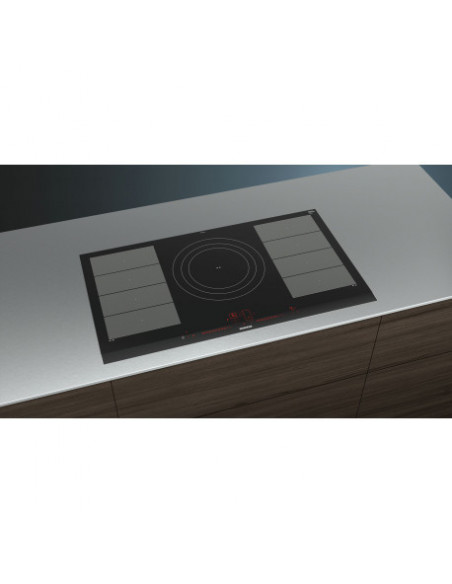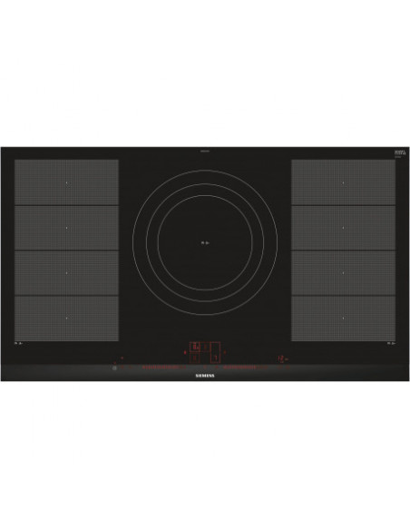 Siemens EX975LVV1E. Design da caixa: Interno, Tipo de boca: Placa com zona de indução, Tipo de superfície: Cerâmica. Tipo de controlo: Toque, Posição de controlo: Topo frontal, Comprimento do fio: 1,1 m. Potência (elétrica ): 11100 W, Corrente: 16 A, Voltagem de entrada de AC: 220-240. Largura do produto: 912 mm, Profundidade da Unidade: 520 mm, Altura da Unidade: 51 mm